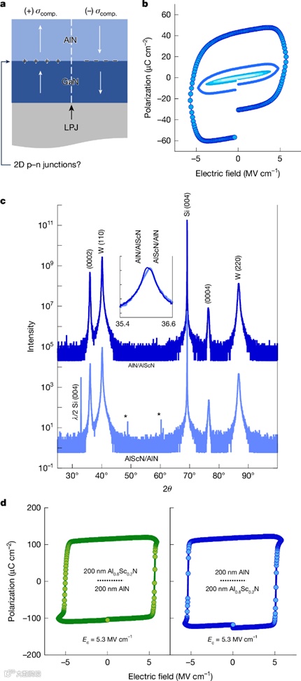 近期,美国宾夕法尼亚州立大学 Jon-Paul Maria 研究团队揭示了一种新的界面现象,首次揭示了纤锌矿异质结构中的邻近铁电效应。研究团队提出:邻近铁电性源于铁电层中畴壁前缘局域动态接近铁电/非铁电界面时产生的弹性场与电场。当这些场抵达内部界面时,它们可协同调控多晶型体的相对稳定性,并将矫顽场强度降至击穿阈值以下——其作用机制类似于取代阳离子引发的局域改性效应,从而触发极化翻转。相关研究成果以“Proximity ferroelectricity in wurtzite heterostructures”为题发表在《Nature》上。(郑佳慧)