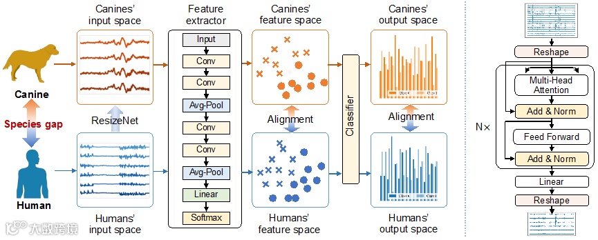 近日,华中科技大学伍冬睿教授团队在跨物种及跨模态癫痫检测方向取得重要进展,提出了一种基于重构网络(ResizeNet)的多空间联合对齐(Multi-Space Alignment, MSA)方法,实现了犬类与人类脑电(EEG)信号的跨物种精准迁移,大幅提升癫痫检测性能。该研究成果发表于《国家科学评论》(National Science Review, NSR)。