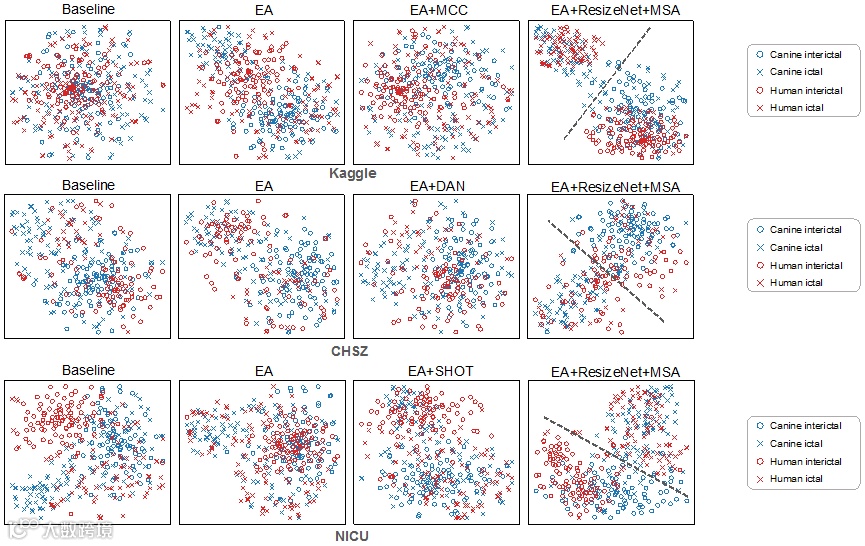 基于犬类癫痫和人类癫痫神经生理特性的高度相似性,该研究提出基于重构网络的多空间联合对齐(ResizeNet+MSA)方法,实现跨物种(犬/人)及跨模态(头皮/颅内EEG)癫痫检测,突破单物种、单模态癫痫检测模型的局限,实现精准迁移。