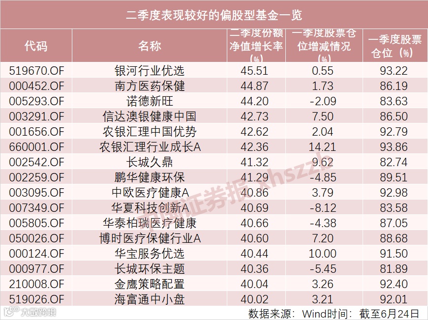 中证君梳理数据来看,截至6月26日,二季度业绩表现较好的混合型基金在一季度末普遍仓位较高,并且一季度股票仓位较2019年底有所增加。