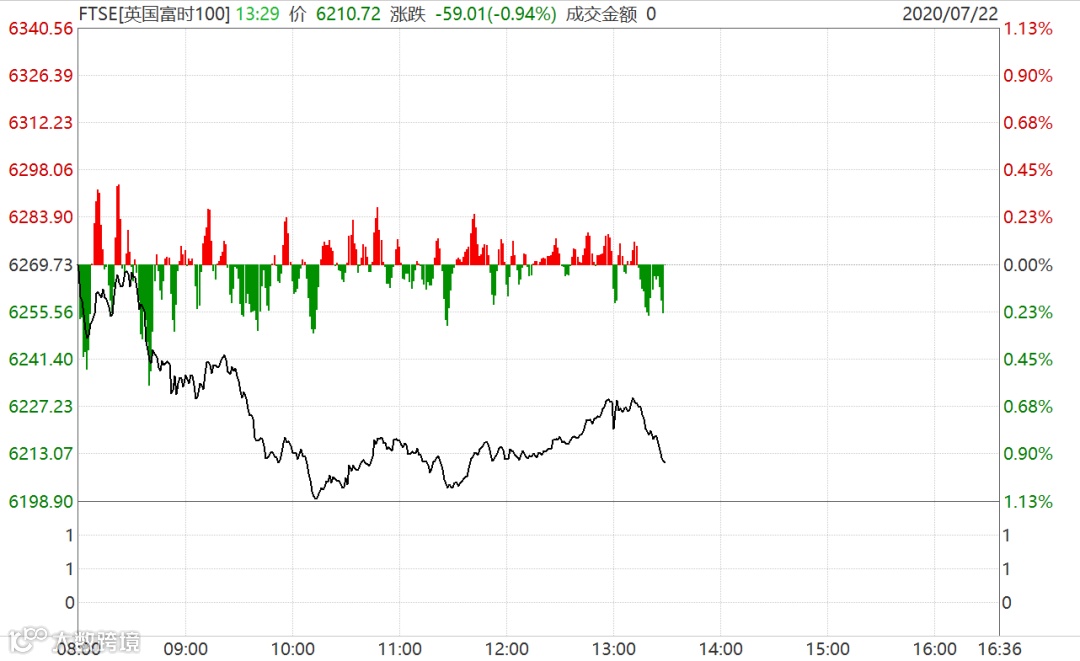 英国富时指数在日内低位波动。