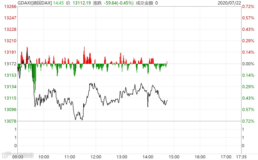 欧股开盘后,低开低走,此后跌幅缩窄。德国DAX盘中一度跌超0.7%,截至21:00,跌幅缩窄至0.4%左右。