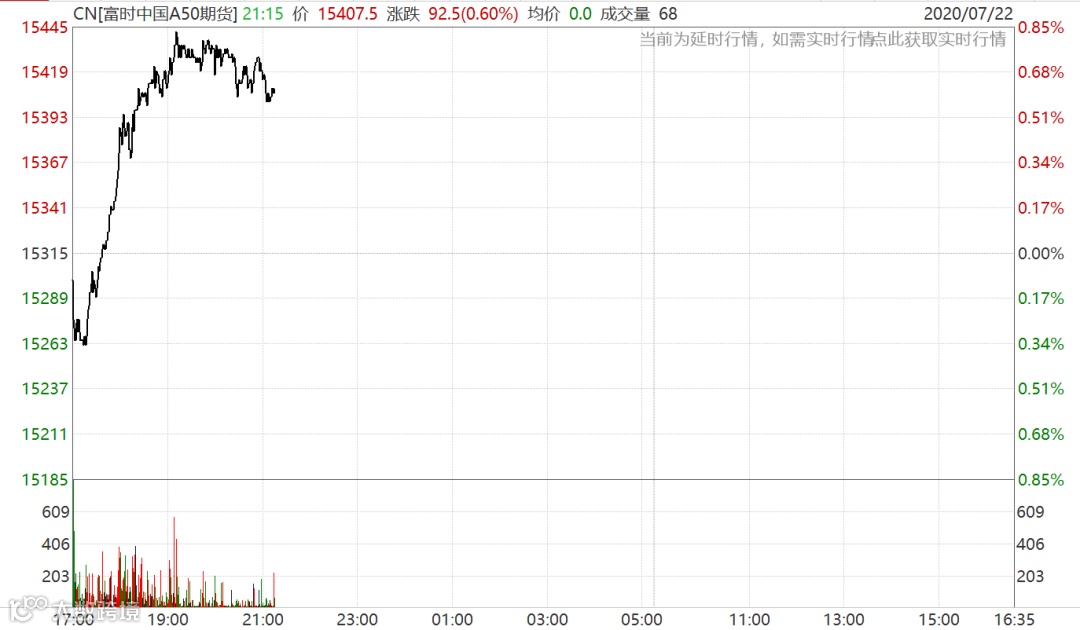 A50指数期货走势,反映出市场对风险的担忧,盘初低开低走,但却很快反弹。截至21:20,A50指数期货涨近0.6%。