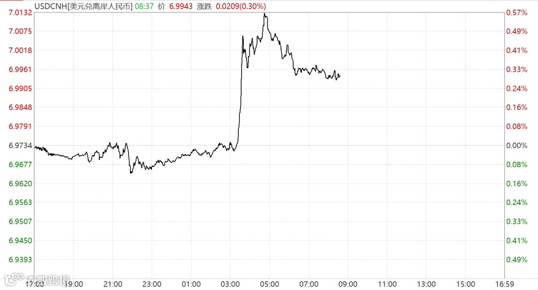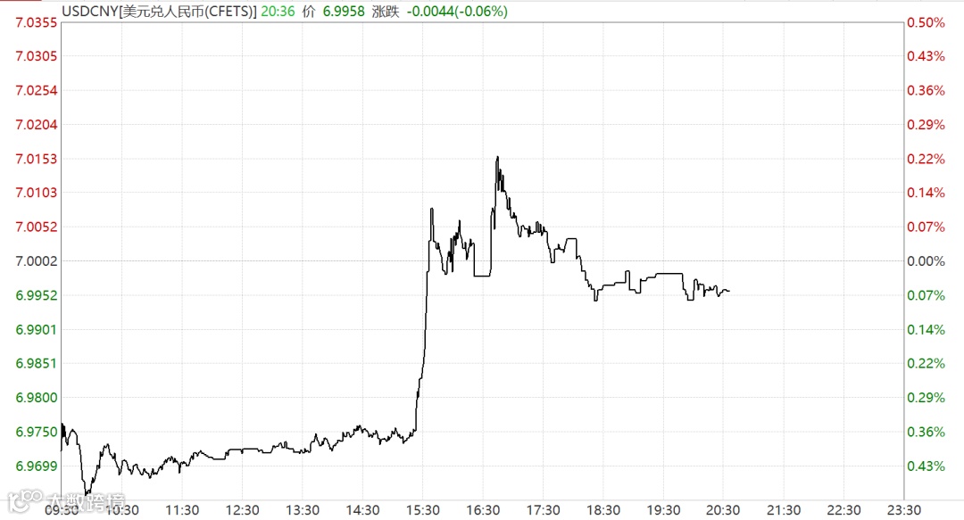 下午却画风突变。A股收市后,大约15:20左右,在岸、离岸人民币对美元汇率双双短线跳水,跌逾300点,失守7元关口。