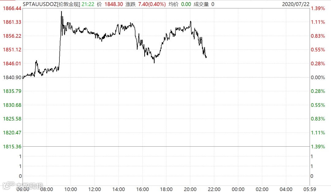 黄金一度拉升,但截至中证君发稿,涨幅有所回落。