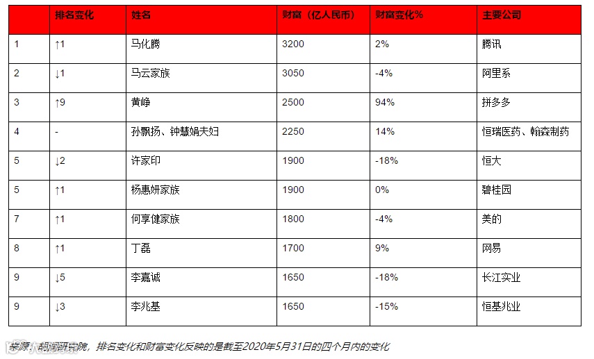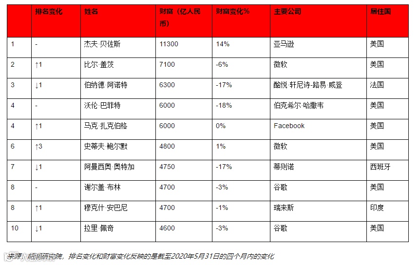 6月23日,胡润研究院发布《疫情四个月后全球企业家财富变化特别报告》(下称“报告”),研究了胡润全球富豪榜上的企业家在截至2020年5月31日的四个月内的财富变化。