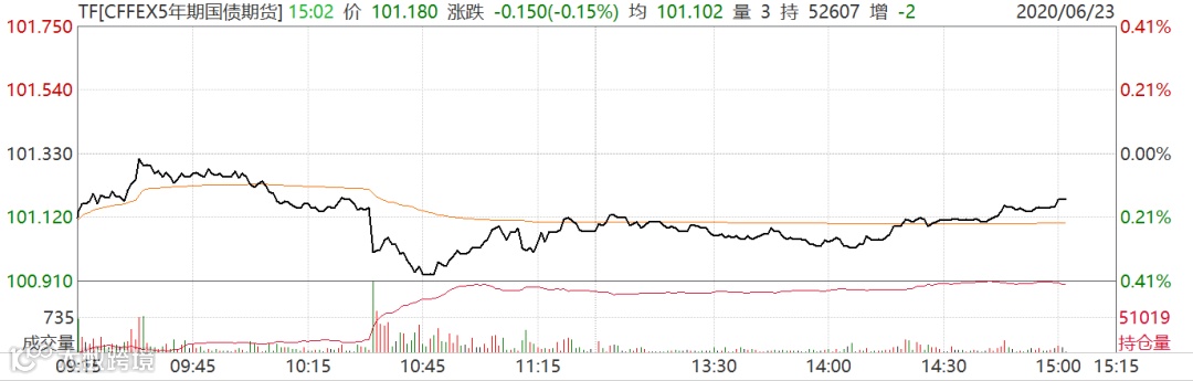 截至收盘,国债期货跌幅收窄,10年期主力合约跌0.11%,5年期主力合约跌0.04%,2年期主力合约跌0.01%。