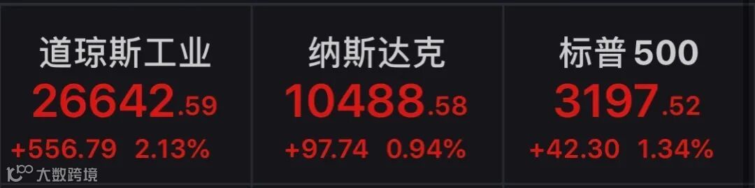 美股全线上涨 道指涨逾550点