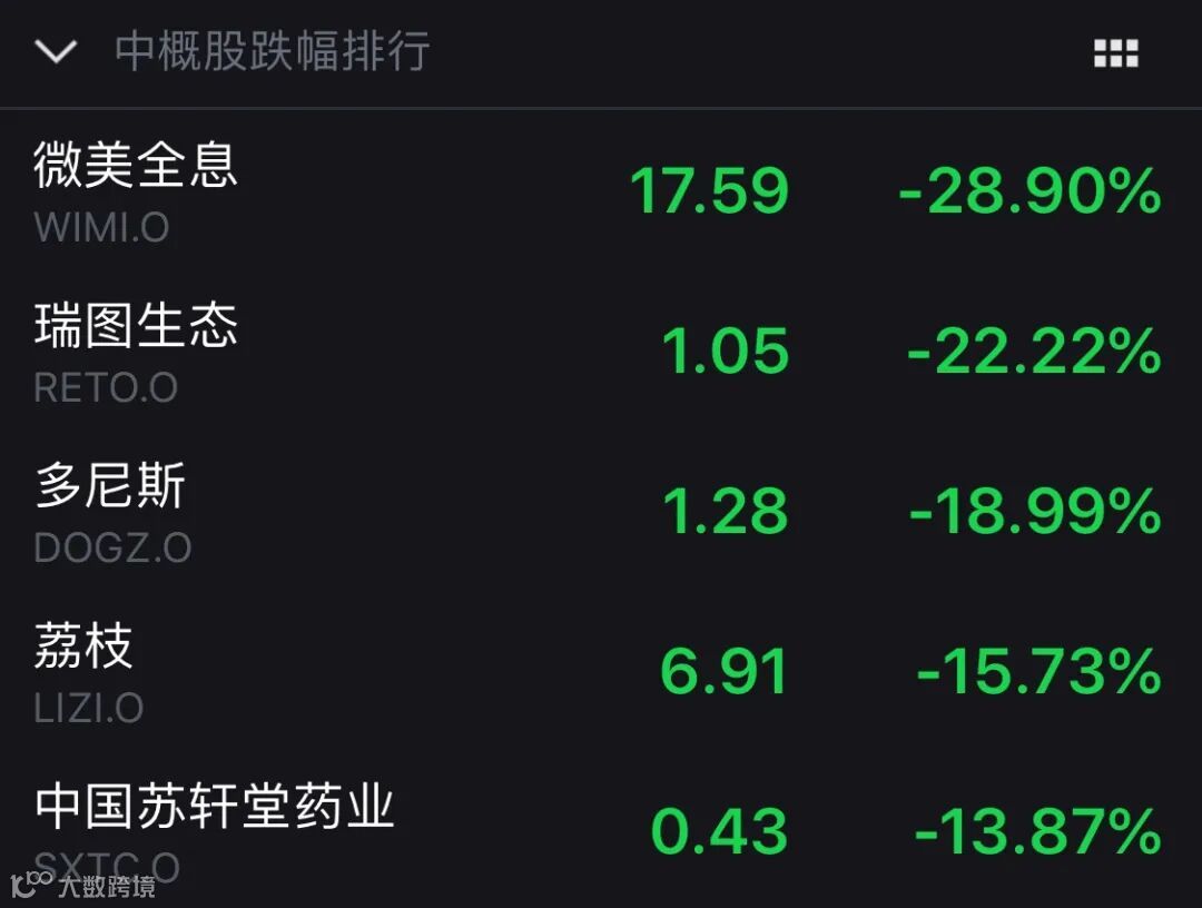 中概股多数下跌 微美全息跌近30%