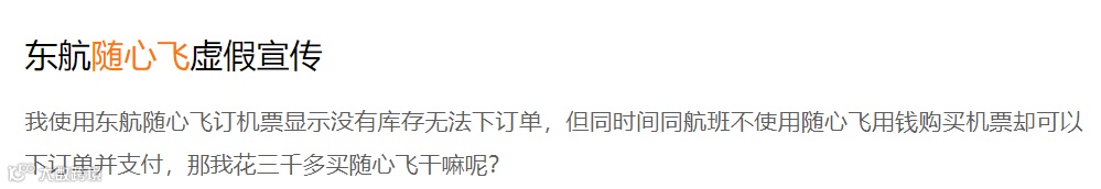 有消费者在黑猫投诉平台表示:“使用东航随心飞订机票显示没有库存,无法下订单,但同时间同航班不使用随心飞用钱购买机票却可以下订单并支付。”