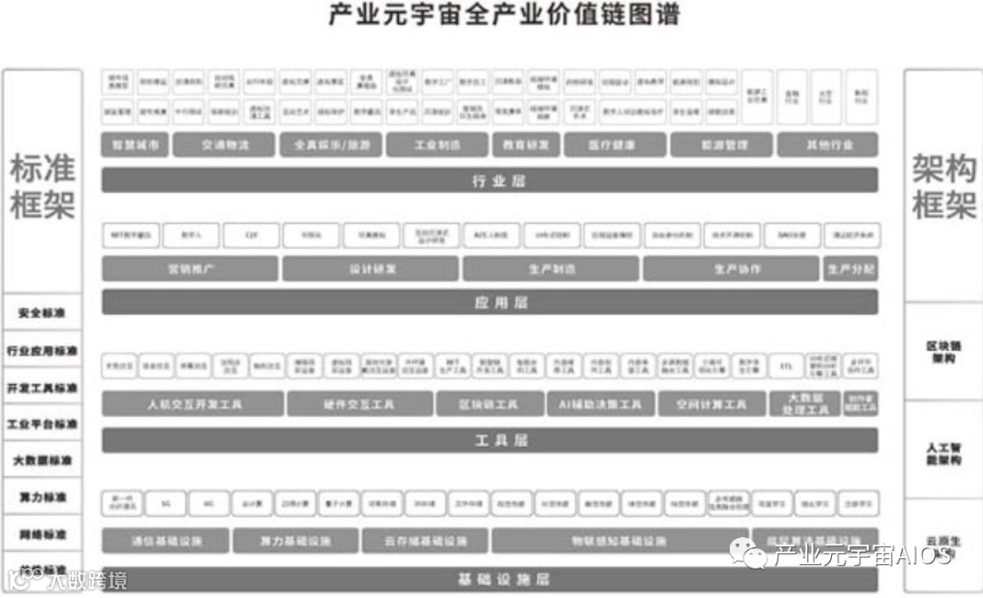 下文将从基础设施、标准体系、工具集和行业应用这四个从底向上的层次,来阐述产业元宇宙的技术框架。