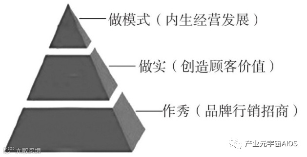 当然,也有一些园区谙熟运营之道,已开始全方位尝试探索园区的复合经营,且初见成效。纵观全行业的运营,呈现出“作秀、做事、做模式”三个层级,或称“三重境界”,位于象牙塔顶端的当然是“做模式”,如图24-2所示。