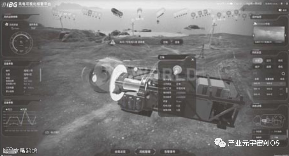 最终呈现在人们面前的,是一个虚拟世界的海上风电场,以三维模拟地球为底板,在其上构建海洋、风机机组、海缆、海上升压站等模型,将从环境气象到风机设备的数据全部与模型进行关联,并借助 AI 技术进行预测与推演。