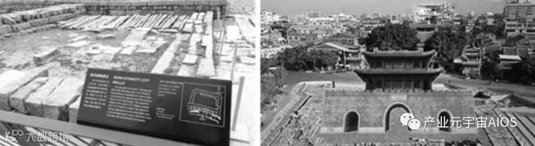虽然,如今的景区现场只留下了当年的建筑地基遗址,但通过混合现实技术,游客只需戴上 AR 眼镜,就会看见古建筑在眼前一一复原,甚至能看到当时街道上人来人往、车水马龙的一番景象。