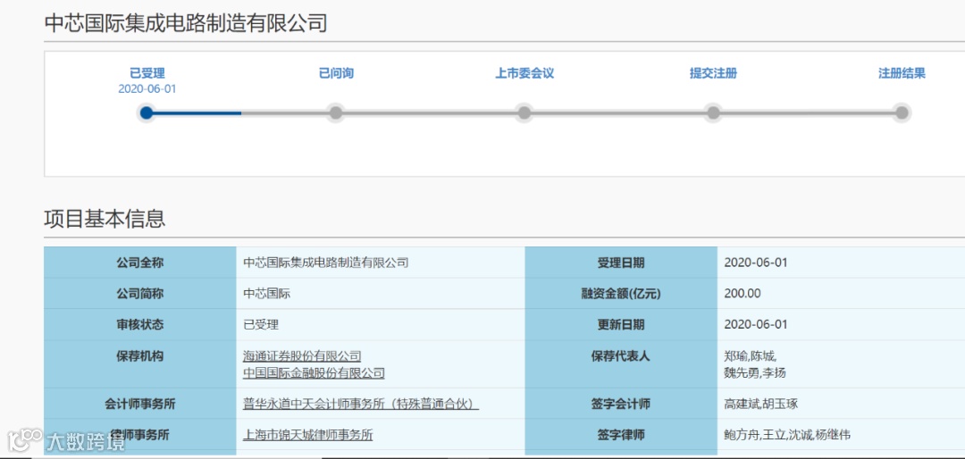 6月1日晚间,上交所官网显示,中芯国际科创板首发上市申请已获受理。