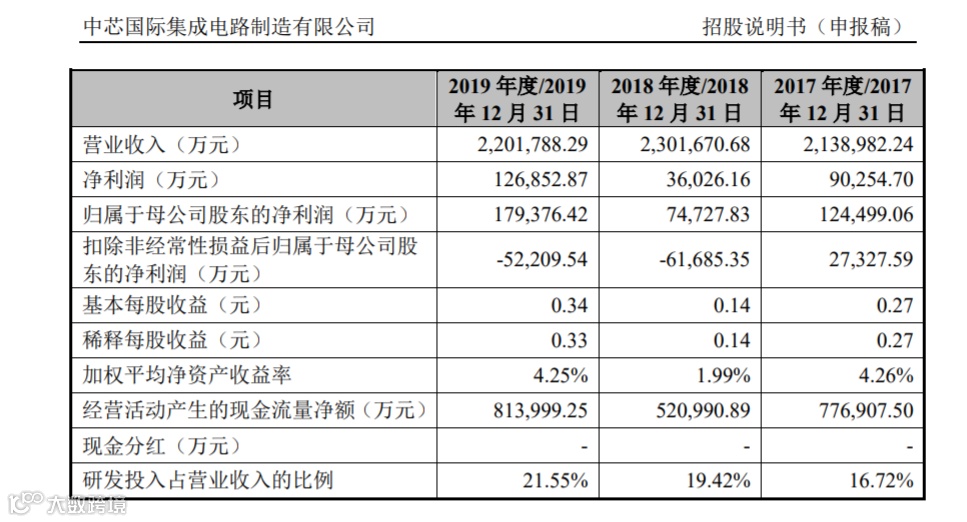 中芯国际2018年和2019年归母净利润分别为7.47亿元和17.93亿元,2020年第一季度,公司营业收入为64.01亿元,同比增加38.42%;毛利率为21.58%,同比增长2.81个百分点;扣除非经常性损益后归属于母公司股东的净利润为1.42亿元,而上年同期为-3.28亿元;经营活动产生的现金流量净额为15.31亿元,同比增加151.83%。