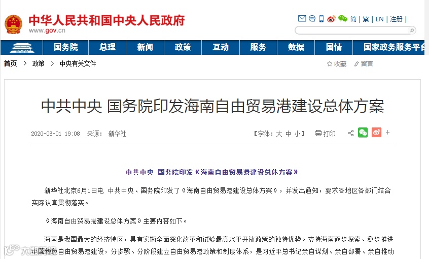 据新华社6月1日报道,中共中央、国务院印发《海南自由贸易港建设总体方案》(以下简称《总体方案》)。海南自贸港建设时间表和路线图由此明确。