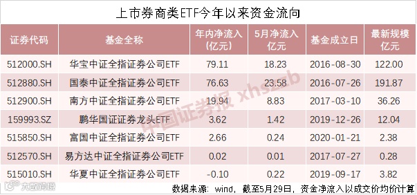 机构人士认为,相关制度安排将利好券商和证券IT龙头。今年以来,7只上市券商ETF合计资金净流入达181.88亿元,3只龙头券商ETF在5月份继续吸金,份额均已创下历史新高。