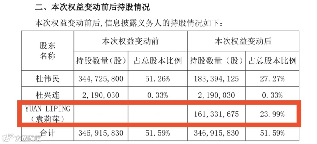 康泰生物此前公告显示,杜伟民1963年出生,今年57岁;袁莉萍于1971年出生,加拿大国籍,今年49岁。两人离婚,杜伟民分割了逾235亿元市值给前妻,创造A股史上“分手费”最高纪录。