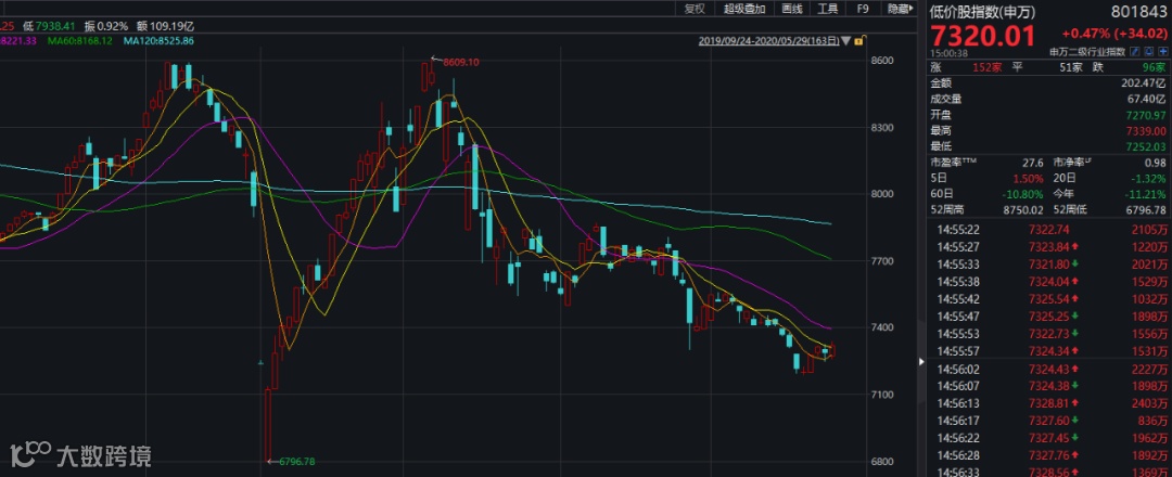 第三,高价股与低价股方面。5月份,高价股指数与低价股指数走势大相径庭,前者整体震荡向上,而后者则一路阴跌。