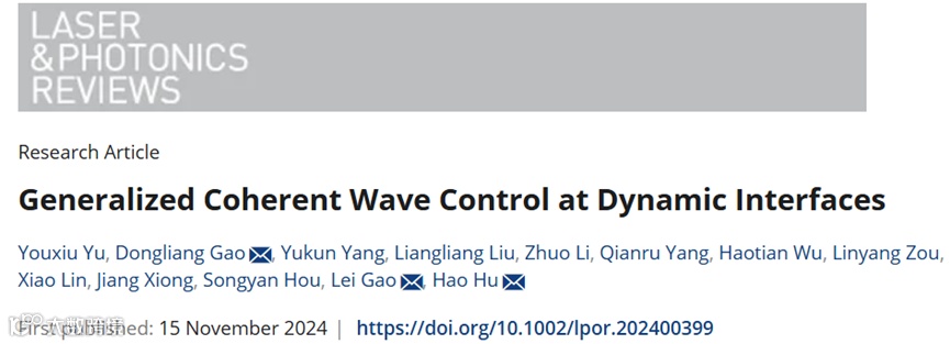 近日,南京航空航天大学胡昊课题组,苏州大学高东梁课题组联合苏州城市学院高雷课题组将相干波调控的概念引入时空超材料,以打破传统相干波调控的限制,促使不同频率和波矢的信号都可以进行相干波调控。相关工作以“Generalized Coherent Wave Control at Dynamic Interfaces”为题发表于期刊《Laser & Photonics Reviews》上。苏州大学物理科学与技术学院研究生余尤秀为论文第一作者。通讯作者为南京航空航天大学胡昊研究员和苏州大学高东梁教授,及苏州城市学院副校长高雷教授。