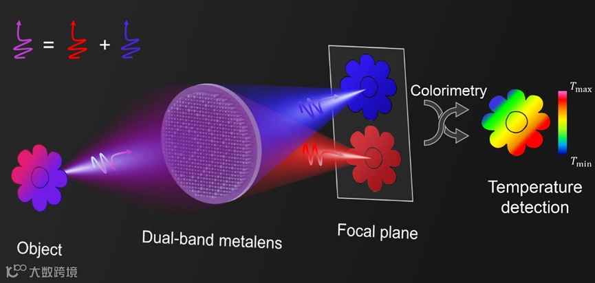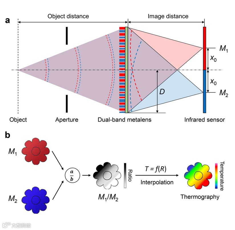图1 双波段超透镜比色热成像示意图。