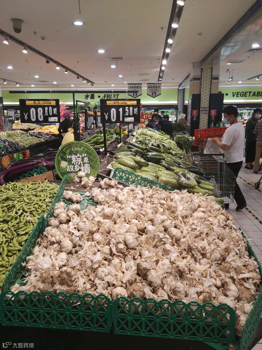 中证君近日在某商超拍摄的内景。大蒜价格为1.58元/斤。