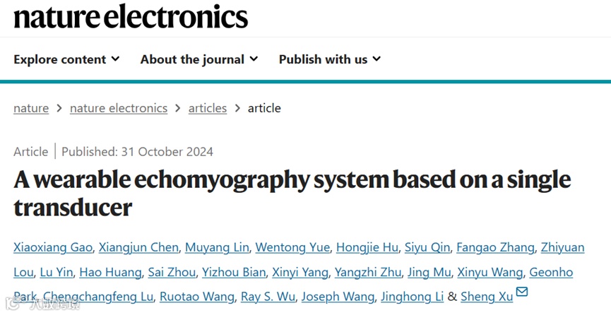 2024年10月31日,相关工作以“A wearable echomyography system based on a single transducer”为题发表在 Nature Electronics 上。
