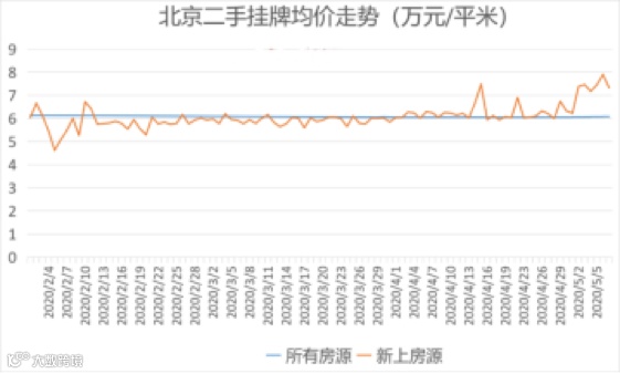 来自北京某大型中介统计的新挂牌二手房价格走势来看,新挂牌二手房价格已超过当前平均单价,或预计部分业主有提价的想法。