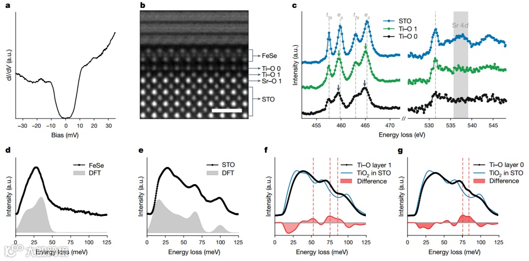 为探究该界面超导增强的微观机制,由加州大学尔湾分校潘晓晴教授课题组、中国科学院物理研究所、普林斯顿大学和乌普萨拉大学等组成的国际团队,利用高分辨电子能量损失谱(EELS)技术,首次对FeSe/STO界面声子模式进行了原子级别的成像分析。团队在75到99 meV的能量范围内发现了新型光学声子模式,其源于 STO 基底中氧原子的面外振动,并与 FeSe 中的电子实现了强耦合。这种耦合不仅提高了超导性,还证明了FeSe和STO间的层间距离对EPC强度和超导间隙有显著影响。通过结合密度泛函理论和冻结声子多层片模拟,团队深入解析了界面声子特性。这一成果揭示了FeSe/STO界面的超导性增强机制,为未来高温超导体设计提供了重要的理论支持。研究表明,通过优化界面结构和调整电子-声子耦合,可以进一步提升超导材料性能,这为未来在材料界面工程中探索更高效的高温超导体奠定了坚实基础,为超导器件的发展带来了新的机遇和挑战。相关内容发表于《Nature》上。(张琰炯)