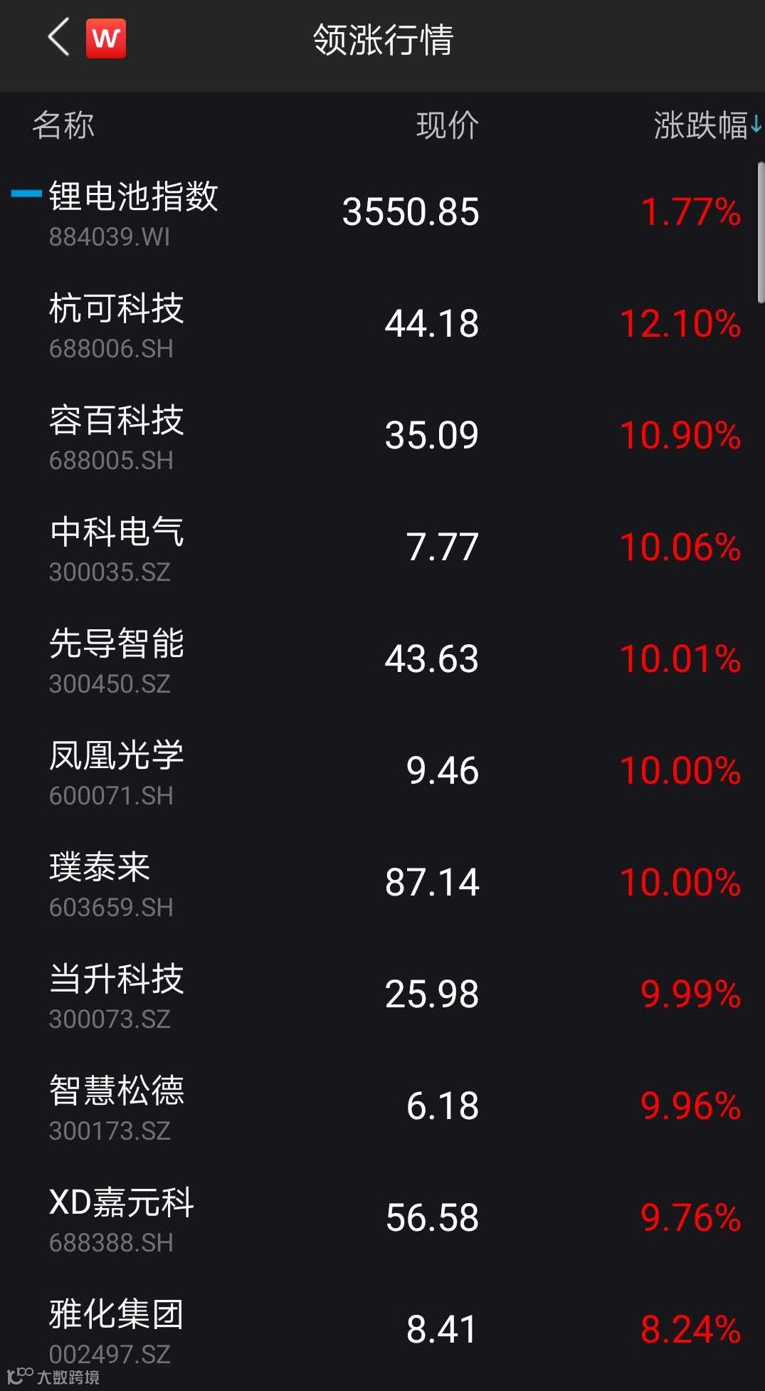 值得注意的是,今日锂电池板块表现抢眼,共有60只成分股上涨,其中杭可科技、容百科技涨逾10%,中科电气、先导智能、凤凰光学6只个股涨停,雅化集团、恩捷股份涨逾8%。
