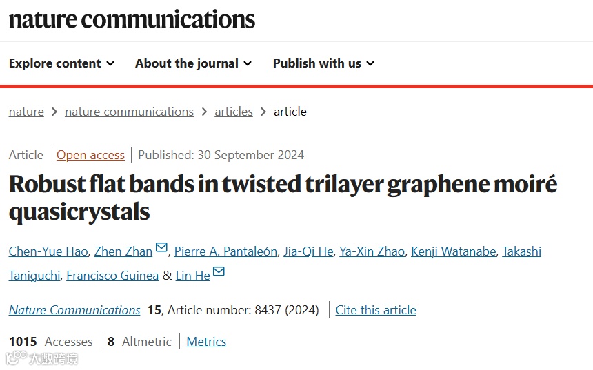 [6] Hao, C.-R., Zhan, Z., He, J.-Q., Pantaleon, Pierre A., He, J.-Q., Zhao, Y.-X., Watanabe, K., Taniguchi, T., Guinea, F., He, L. Robust flat bands in twisted trilayer graphene moiré quasicrystals. Nat. Commun. 15, 8437 (2024)