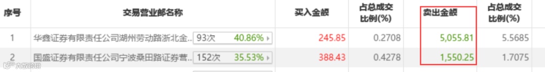 龙虎榜显示,华鑫证券湖州劳动路浙北金融中心证券营业部5月12日买入金额为1796.13万元,5月14日卖出金额达5055.81万元。国盛证券宁波桑田路证券营业部5月12日买入金额为766.78万元,卖出金额为3.22万元;5月14日,该营业部卖出金额为1550.25万元,买入金额为388.43万元。