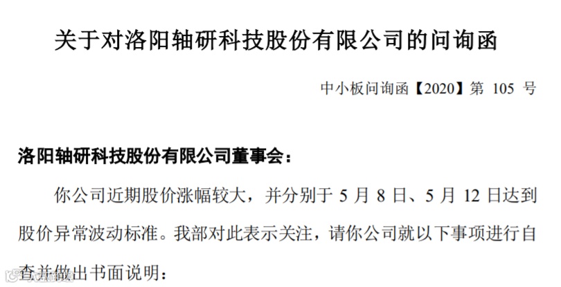 5月14日,离收盘只有半小时左右,已连续6个交易日涨停,今日盘中再度涨停的轴研科技收到深交所问询函。涨停板随即打开,公司股价跳水。但万万没想到,距离收盘还剩10分钟,该股再度封板,斩获7涨停。