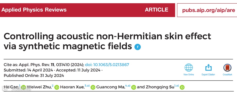 合成磁场的引入在NHSE中扮演了关键作用。磁场打破了时间反演对称性,导致手性边界态的产生。此外,合成磁场的方向和强度还可影响趋肤效应的局域化模式,实现对系统行为的精细调控。NHSE对合成磁场的敏感性,以及与非厄米特性的结合,为可重构的拓扑器件的创造提供了可能,在信号处理、波动操控、能量收集和主动控制系统等广泛应用中展现巨大潜力。合成磁场和NHSE的相互作用机制可以普遍应用于更高维度的系统和其他波动系统,如具有赝磁场的狄拉克点系统和时间调制的光学系统等。