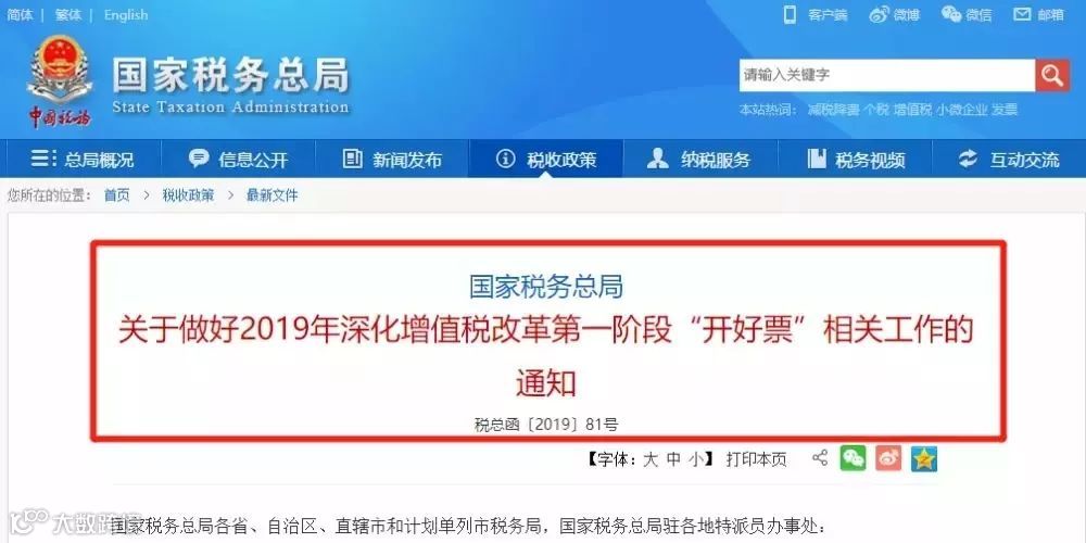 3月21日,国家税务总局发布《关于做好2019年深化增值税改革第一阶段“开好票”相关工作的通知》(税总函〔2019〕81号),明确提出:纳税人要尽快完成税控开票软件升级操作!