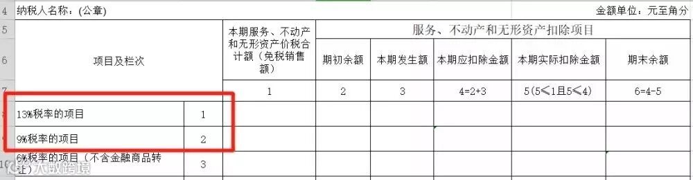 3、将原《增值税纳税申报表附列资料(三)》中的第1栏、第2栏项目名称分别调整为“13%税率的项目”和“9%税率的项目”。
