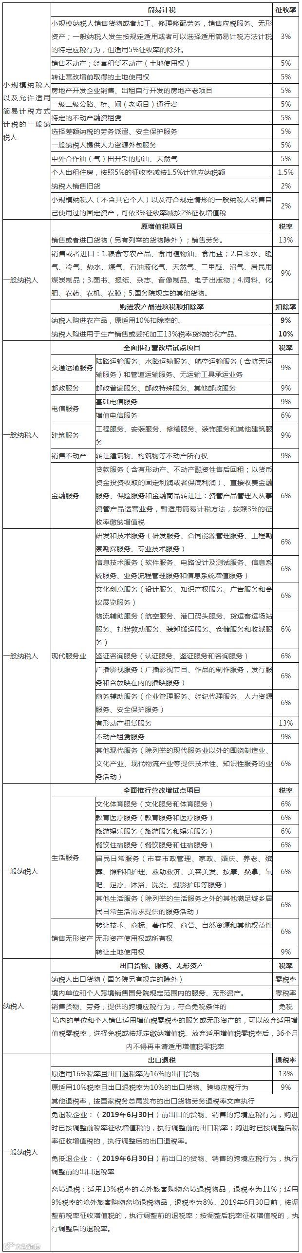 三、原适用16%税率且出口退税率为16%的出口货物劳务,出口退税率调整为13%;原适用10%税率且出口退税率为10%的出口货物、跨境应税行为,出口退税率调整为9%。