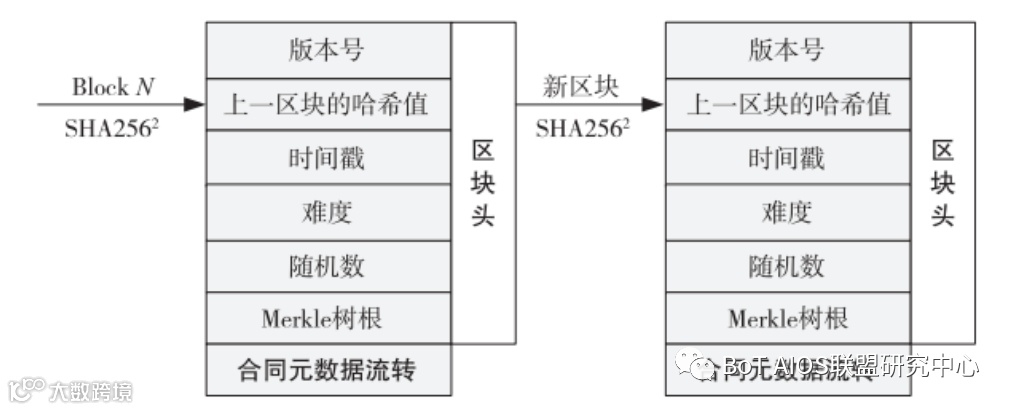 在比特币系统中Ti通常指交易,而在本章的系统中指合同元数据从数据所有者(DataOwner,DO)向数据使用者(Data User,DU)的流转过程。