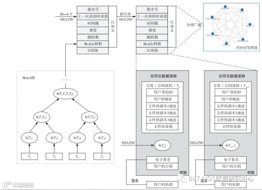 然后,以区块链技术的交易机制为媒介完成合同数据的存储和流转;