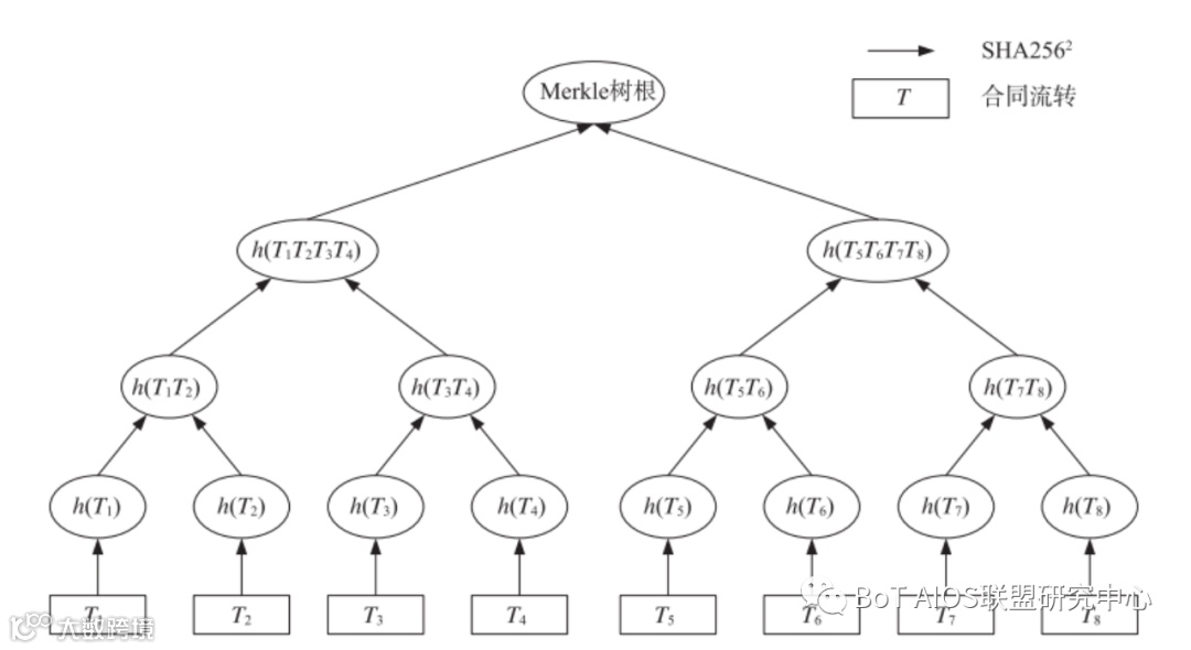 在树中,包含合同信息的每个叶子节点都可以通过其相应的路径进行验证。