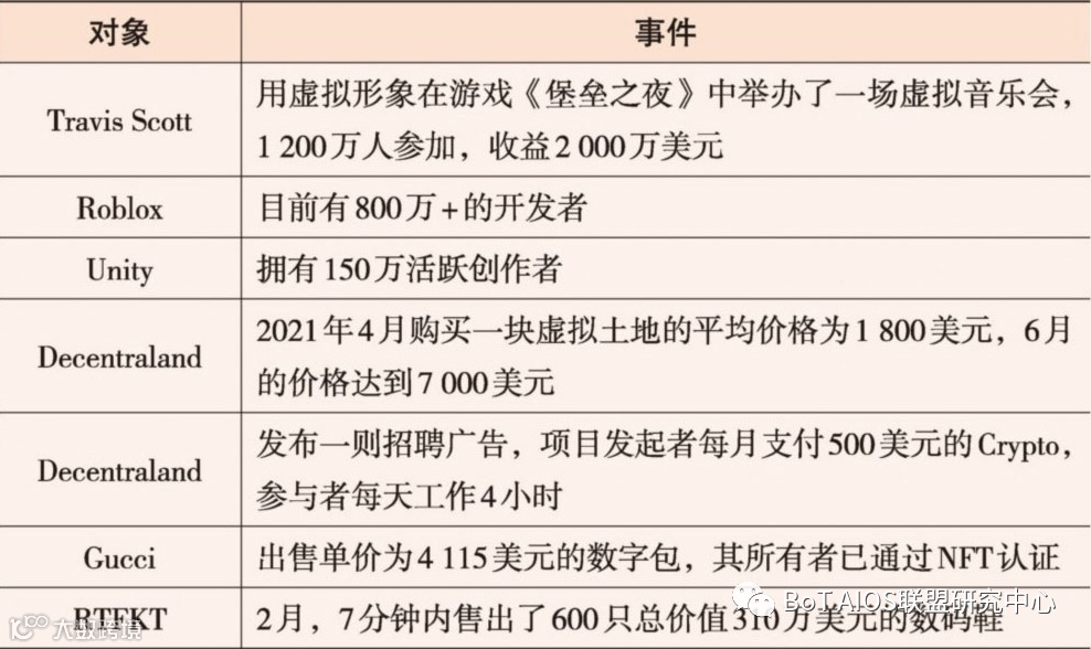 Roblox和Unity目前分别有近800万和150万的创作者;在Decentraland(虚拟世界平台)里,2021年4月购买一块虚拟土地的平均价格为1800美元,6月的价格达到7000美元,同时,该平台发布一则招聘广告,项目发起者每月支付500美元的Crypto,参与者每天工作4小时。