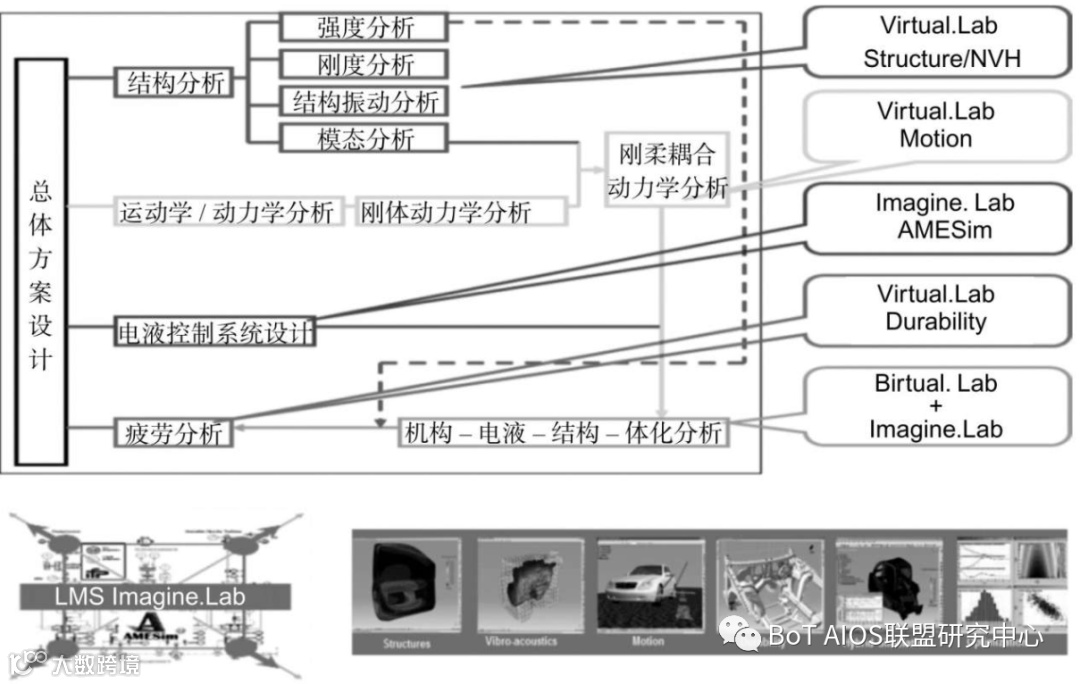 虚拟振动试验涉及有限元建模、系统级NVH、多体动力学、控制与电磁系统仿真、刚柔耦合分析、机电一体化分析、试验相关性分析与模型修正、多学科优化等,并且需要将这些学科结合起来,这是一个典型的多学科综合仿真问题,因此虚拟振动试验的软件实施环境应该是能够涵盖这些学科的系统级平台。