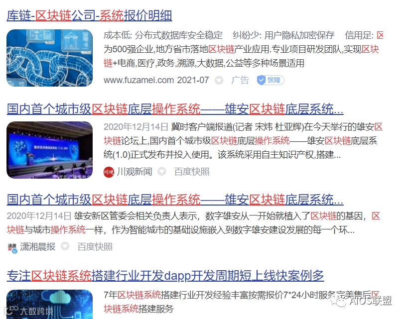 百度搜索——“第一个区块链操作系统”结果截图