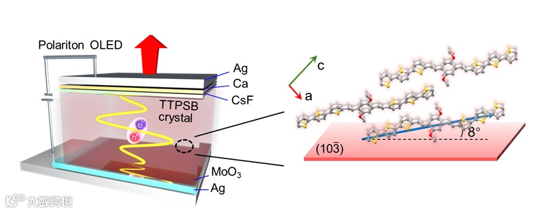 图1. OPLED设备架构示意图及TTPSB单晶的生长方向排列图。