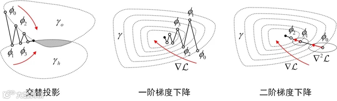 · 交替投影法 (Alternating Projections) 通过在两个闭集合之间的交替投影找出能够满足两个闭集合约束的最优解。