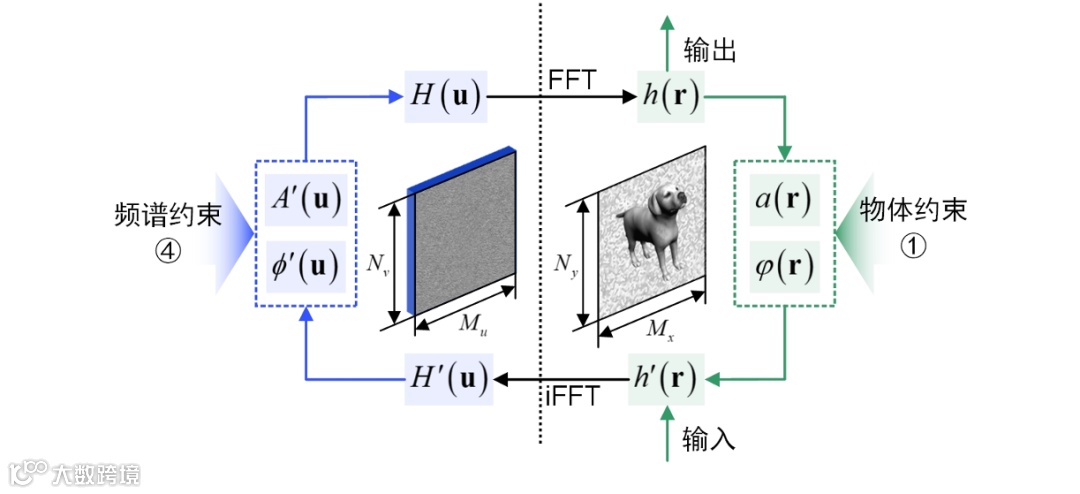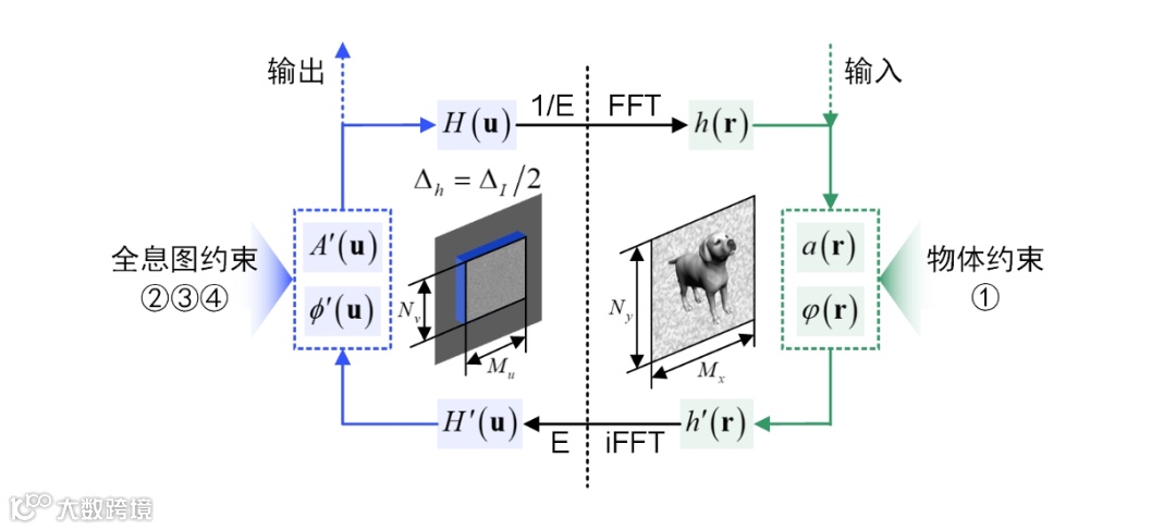 · 约束①限制了重建波前的强度分布为物体强度分布。它作为非凸优化在物平面的约束条件,能够确保全息图如实地重建物光波前强度。