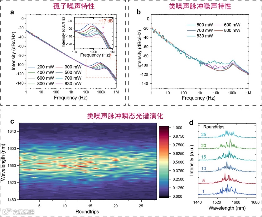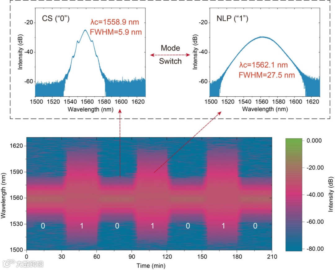 同一谐振器系统中孤子与类噪声脉冲状态的切换,并应用于光源的高速数字编码。相关成果以“