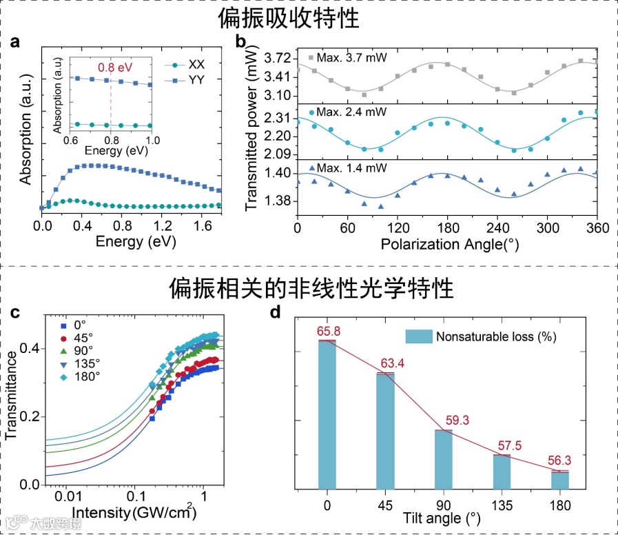 的偏振非线性光学吸收(如图2c、2d)。结果显示,随着偏振控制