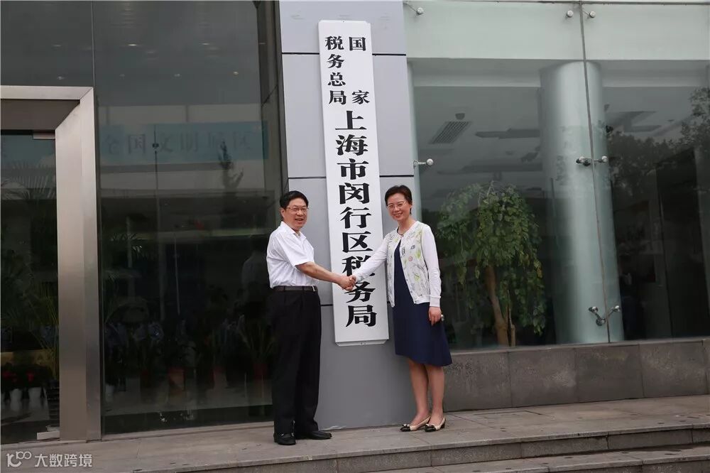 闵行区委常委、副区长沈军和国家税务总局上海市税务局副局长、第二联络督导组组长蒋震平共同为“国家税务总局上海市闵行区税务局”揭牌。